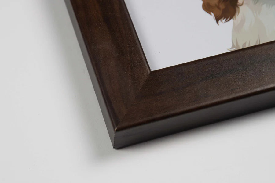 Pet portraits are printed on gallery-quality paper and ready-to-hang components come pre-attached to the high-quality frame.
