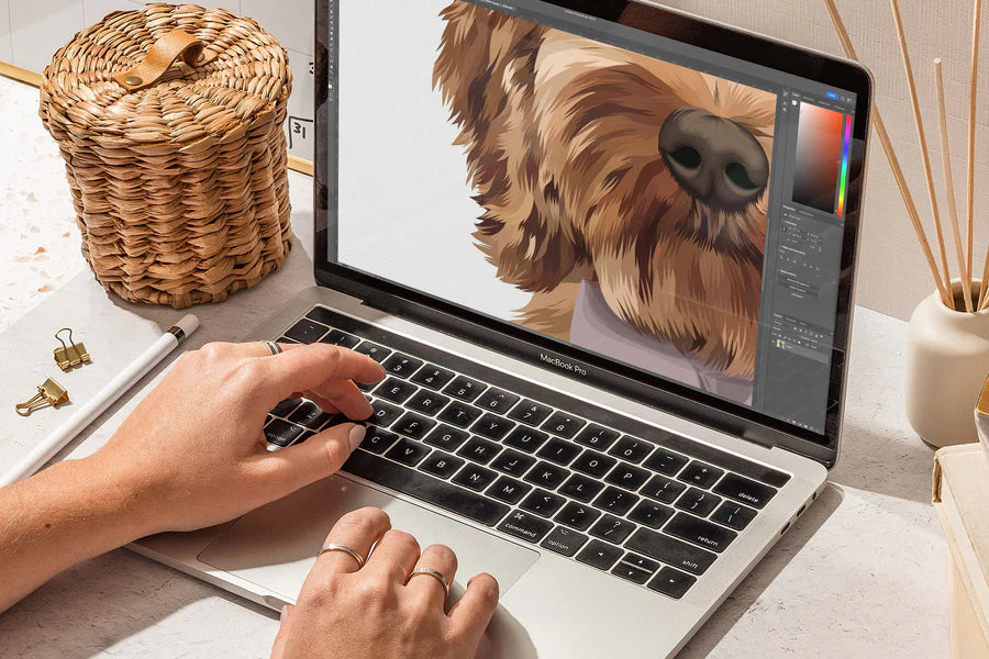 Pet Portraits are hand-illustrated by our talented digital artists. Each portrait is created using a manual & highly technical design process. We do not use filters or apps.
